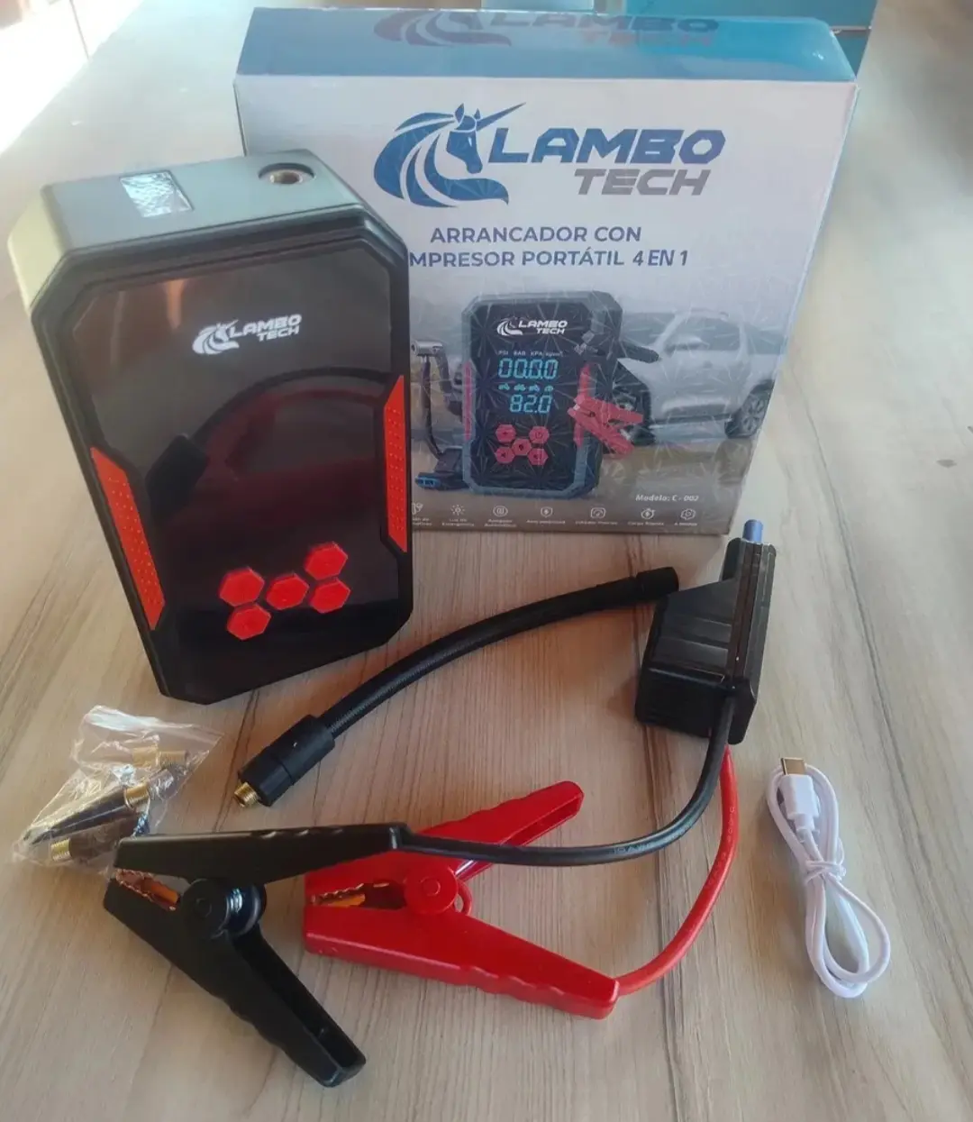 ¡Asegura un viaje tranquilo y sin preocupaciones con nuestro Compresor Aire Portátil Lambo Tech 4x1! Diseñado para brindar inflado rápido como preciso, este inflador digital es la solución perfecta para neumáticos de automóviles, motocicletas, bicicletas, globos o más. Descubre las características que hacen de este compresor tu compañero esencial en la carretera.