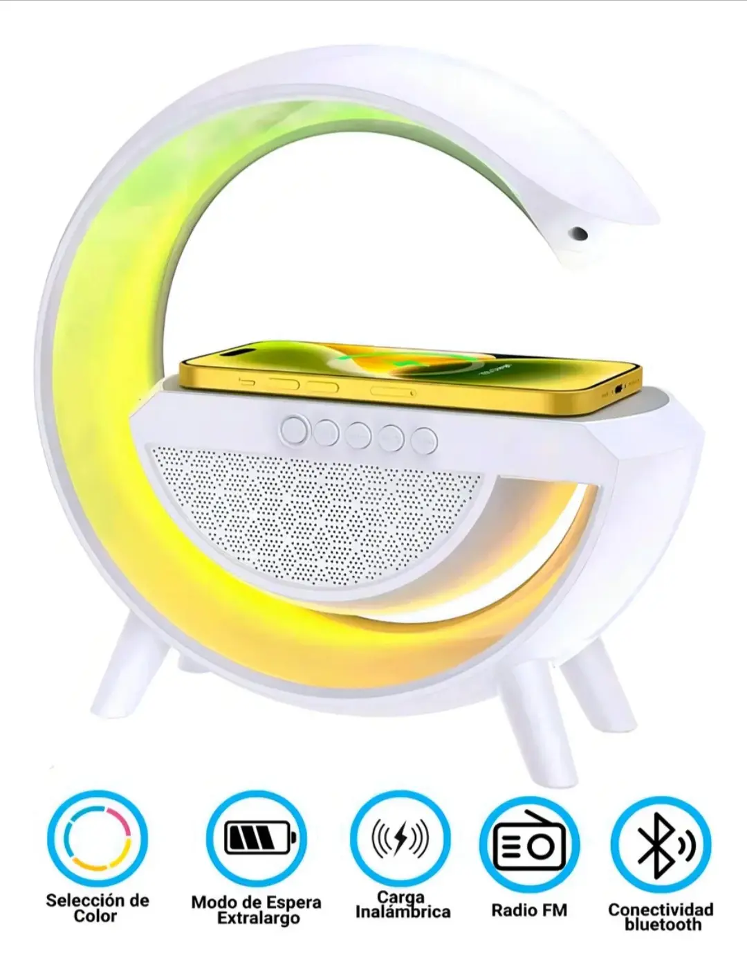 Esta asombrosa lámpara inalámbrica 3 en 1 no es solo una luz ambiental, sino también una base de carga inalámbrica rápida de 15W. También cuenta con un altavoz Bluetooth para poder escuchar música.