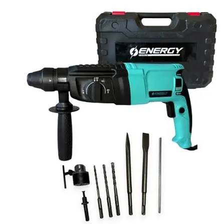 El Rotomartillo Energy RH26M/3/220K combina potencia, precisión y comodidad. Ideal para perforaciones en concreto, madera y metal, ofrece 5200 impactos por minuto y energía de impacto de 2,5 J, facilitando proyectos profesionales y domésticos.
